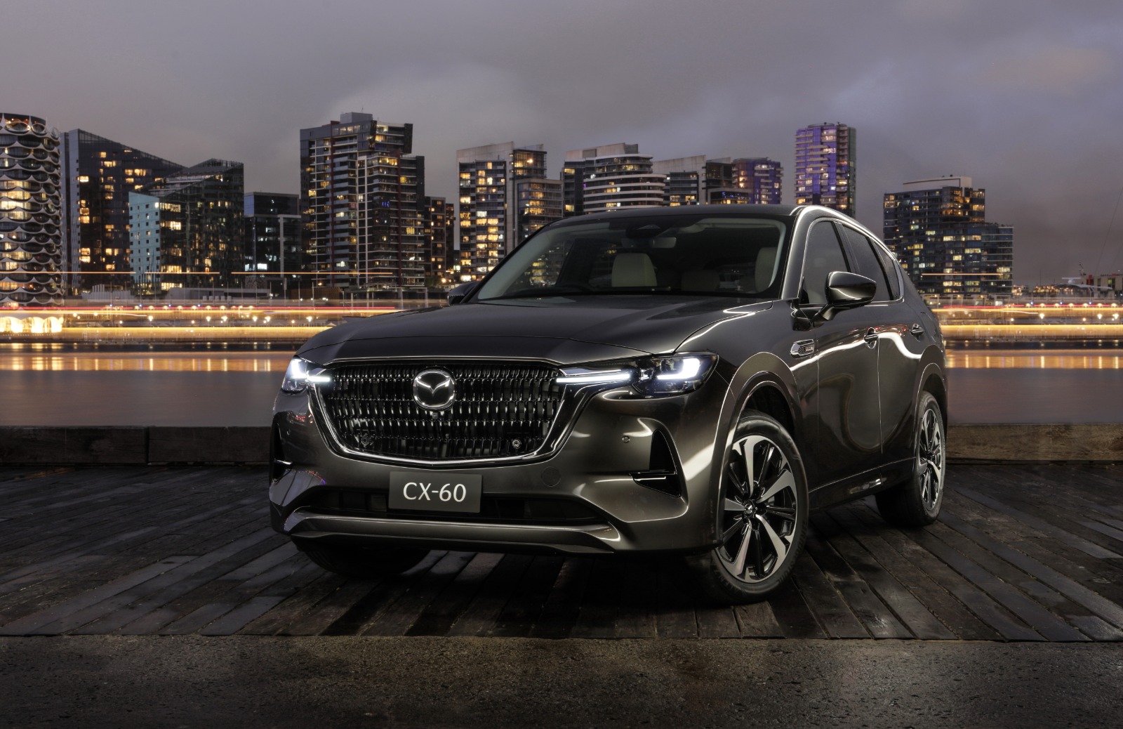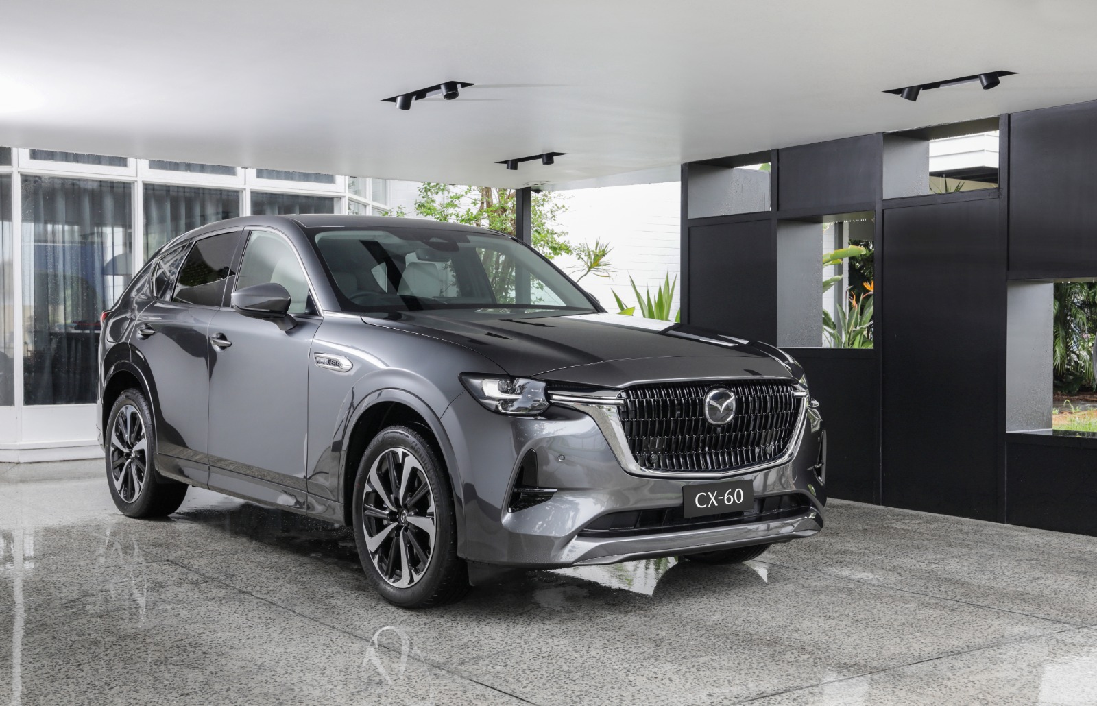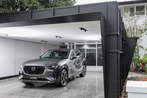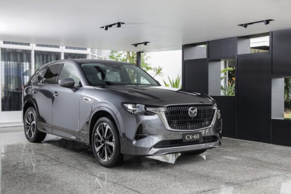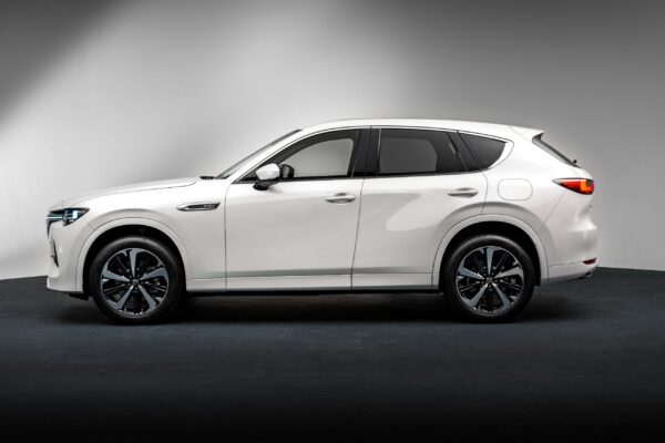 Mazda CX-60 memiliki tampilan eksterior yang memikat dengan kombinasi elemen-elemen desain yang modern dan keanggunan yang khas dari Mazda. Garis-garis yang tajam dan lekukan halus menciptakan siluet yang aerodinamis, sementara gril depan dengan tampilan jala-jala dan lampu depan LED berkontribusi pada karakter yang berani dan dinamis.