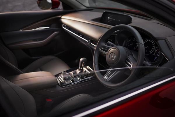 Terdapat lapisan sekunder yang berbentuk sayap pada bagian atas dashboard Mazda CX-30. Lalu mengalir secara horizontal bagian atas panel instrumen menuju ujung trim pintu di sisi penumpang. Sehingga mampu menghasilkan atmosfer yang lapang untuk memberi kabin lebih luas.