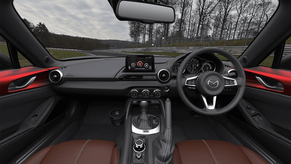 Interior MX-5 RF terasa simpel dan berkelas. Fiturnya sederhana, hanya yang penting untuk have fun saja.